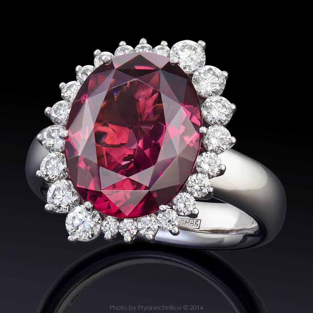 Кольцо. Белое золото 750°. Шпинель, 22 Бриллианта