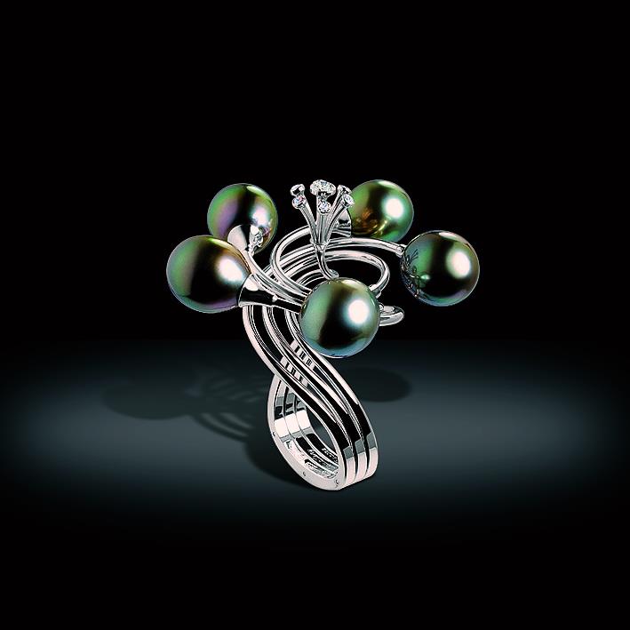 Перстень. Белое золото, жемчуг, бриллианты.