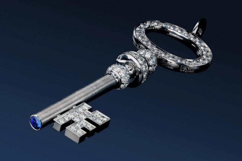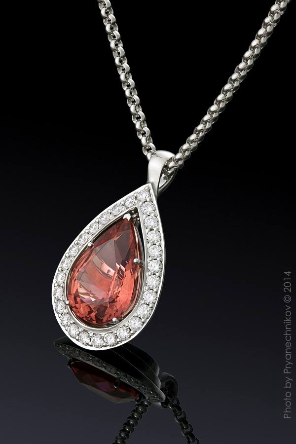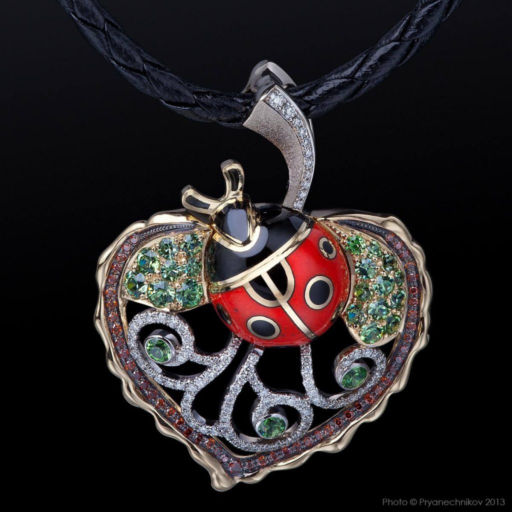 Кулон. Белое и жёлтое золото, горячая эмаль, демантоиды, белые и красно-коричневые бриллианты