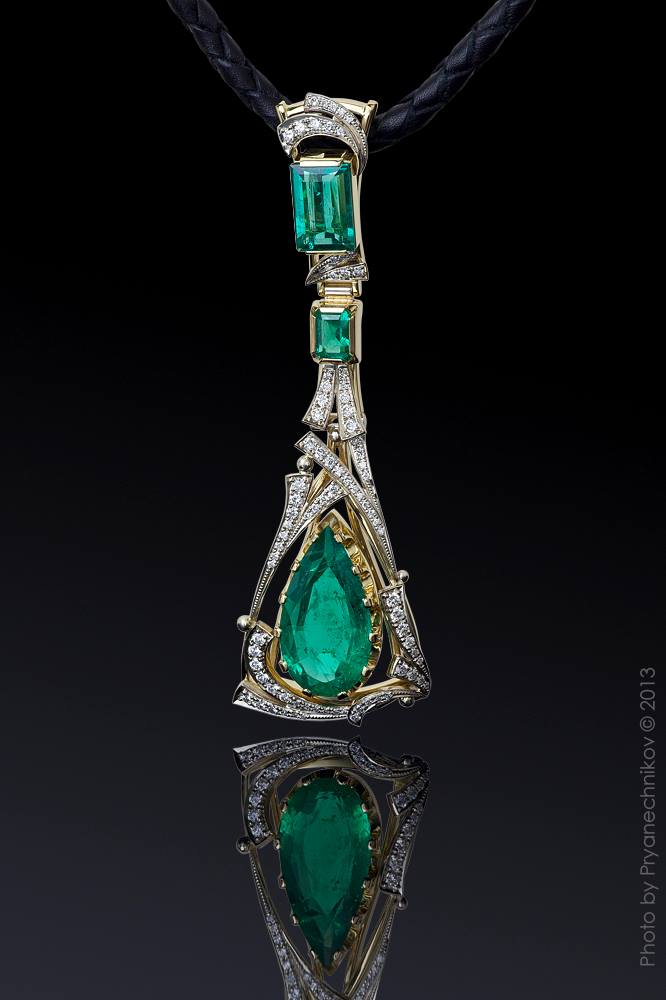 Подвеска. Желтое и белое золото, Изумруды, бриллианты.